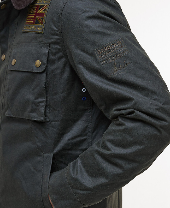 Dalla collezione Steve McQueen, la giacca Barbour International Workers Wax aggiunge un tocco di raffinatezza a qualsiasi outfit, grazie alla fodera quadrata trapuntata che garantisce comfort e calore e al colletto in velluto a coste per un contrasto di tessuto complementare. L'abbottonatura frontale con bottoni metallici nasconde una cerniera per proteggerla dalle intemperie, mentre i polsini e l’orlo sono regolabili per una vestibilità perfetta. Due tasche a filetto e una tasca sul petto con bottoni metallici aggiungono praticità senza rinunciare allo stile. Il ricamo Barbour International Steve McQueen è applicato sul petto a sinistra.